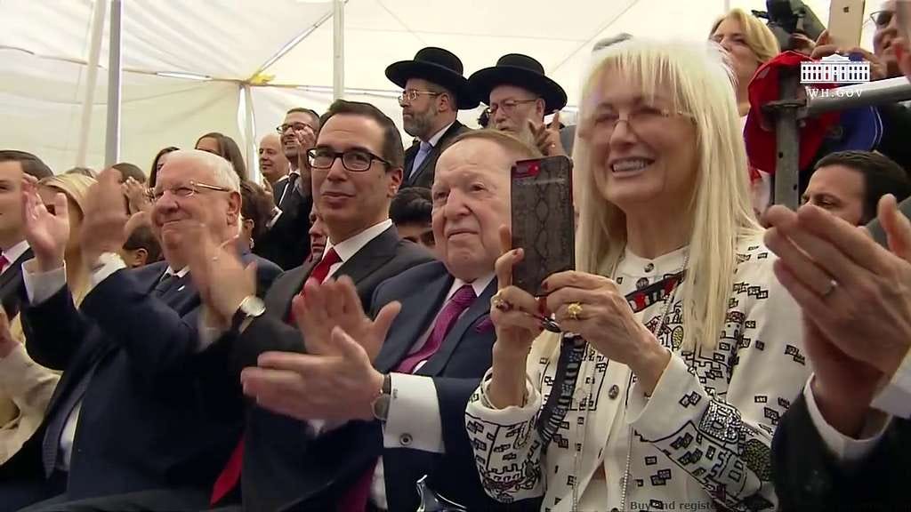 The Adelsons played a key role in shaping significant Middle East policies through their influence on the president, according to Trump. The president stated that the Adelsons played a crucial role in shaping three significant Middle East policies, including his 2017 recognition of Jerusalem as the capital, the 2018 relocation of the embassy, and the 2019 endorsement of sovereignty over the Golan Heights.