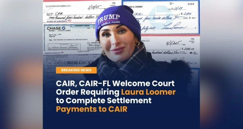 We look forward to receiving Ms. Loomer’s final payments and using the funds to once again protect American Muslims and our neighbors from hate.”