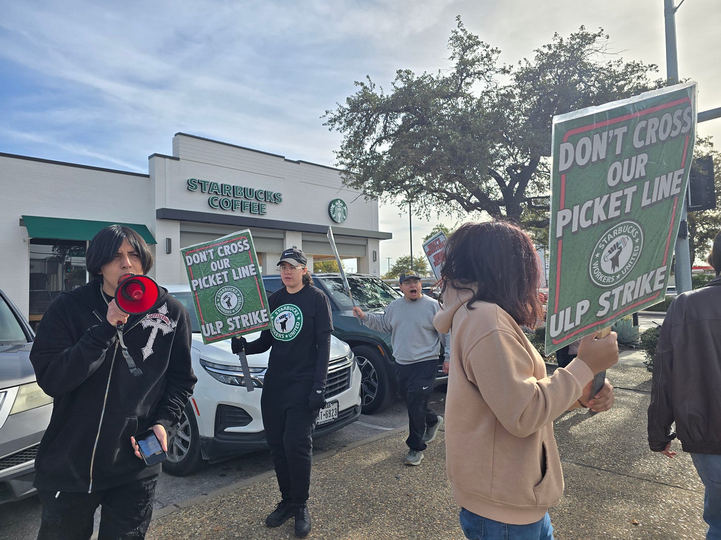 Preston Road Starbucks patrons were treated to a shot of picketing and protesting with their orders Friday morning as baristas and allies voiced their desire for a fair contract.