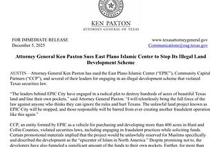 Paxton Sues East Plano Islamic Center, Alleging Illegal Securities Scheme Behind ‘EPIC City’ Development